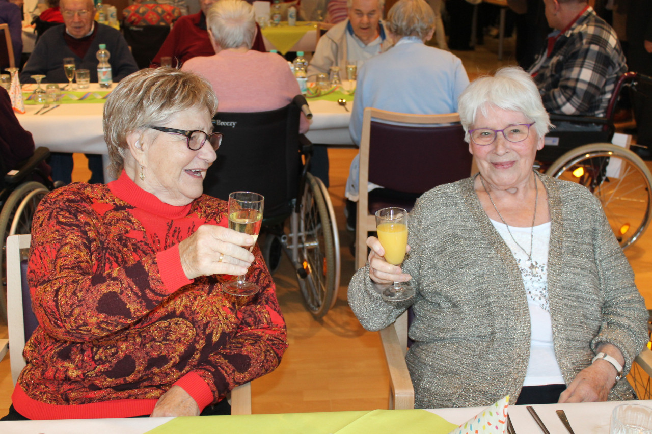 Auch Einrichtungsleiter Patrick Steuer hielt in seiner Ansprache einen kurzen Rückblick sowohl auf die zahlreichen Aktivitäten in 2023 als auch auf die umfangreichen Neuanschaffungen wie z.B. neue Bestuhlung und Tische im großen Festsaal, Einrichtung von gemütlichen Fernsehecken auf den Wohnbereichen und der Fertigstellung eines Snoezle-Bades auf dem Wohnbereich 3. Herzlich begrüßen konnten wir bei unserem diesjährigen Neujahrsempfang nicht nur viele Bewohner sondern auch den Geschäftsführer der cts Alexander Funk und den Geschäftsführer der Sparte Altenhilfe der cts Michael Groß. Auch zwei Vertreter*innen des Seniorenbüros der Stadt Püttlingen sowie der 1. Beigeordnete der Stadt Püttlingen Jürgen Detzler waren unter den anwesenden Gästen. Sabine Reichert, Leiterin der sozialen Betreuung, nutzte die Gelegenheit, nicht nur ihrem Team herzlich für ihr Engagement zu danken, sondern verwies auch auf die Wichtigkeit jedes einzelnen Mitarbeitenden im Hause. Beim anschließenden gemeinsamen Mittagessen wurden noch angeregte Gespräche geführt und der Jahresrückblick in Bildern rief noch einmal die vielen tollen Veranstaltungen des letzten Jahres in Erinnerung.